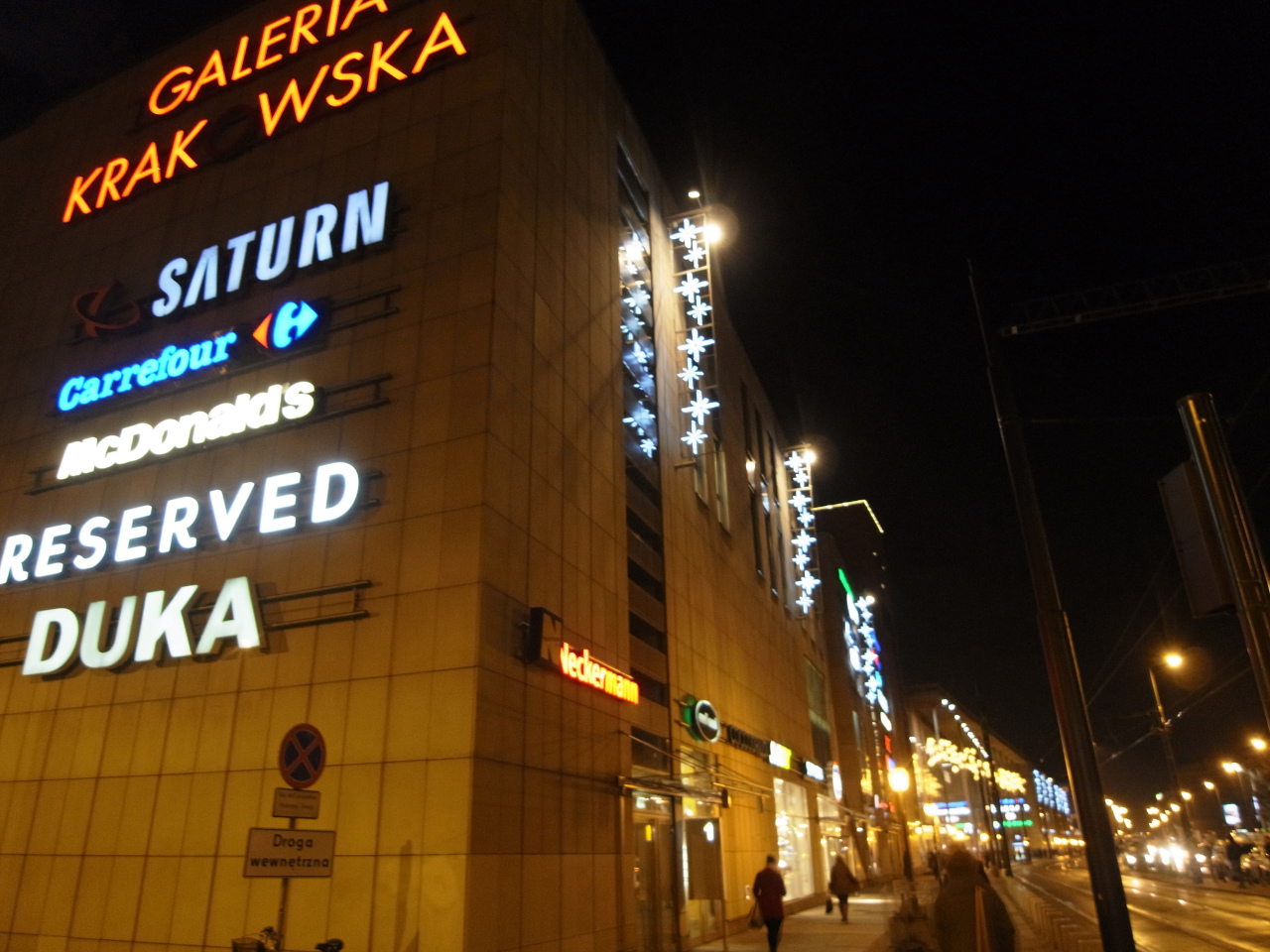 クラクフ中央駅に隣接して立地するドイツ系のデパートGaleria Centrum。ドイツのそれと同様にスーパーのCarrefourやバーガーキングなどのファストフード、これまたドイツ系の家電量販店SATURNも出店していて非常に便利です。