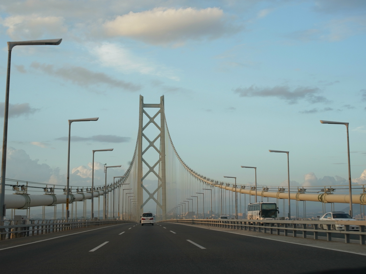 明石市と淡路島を結ぶ明石海峡大橋。淡路島へのアクセスのみならず、関西方面から四国(とくに徳島や高知)に向かう主要ルートになっています。橋そのものは舞子と淡路島をつないでいますが、2号線の舞子から橋に入るにはかなり迂回しなければなりません。