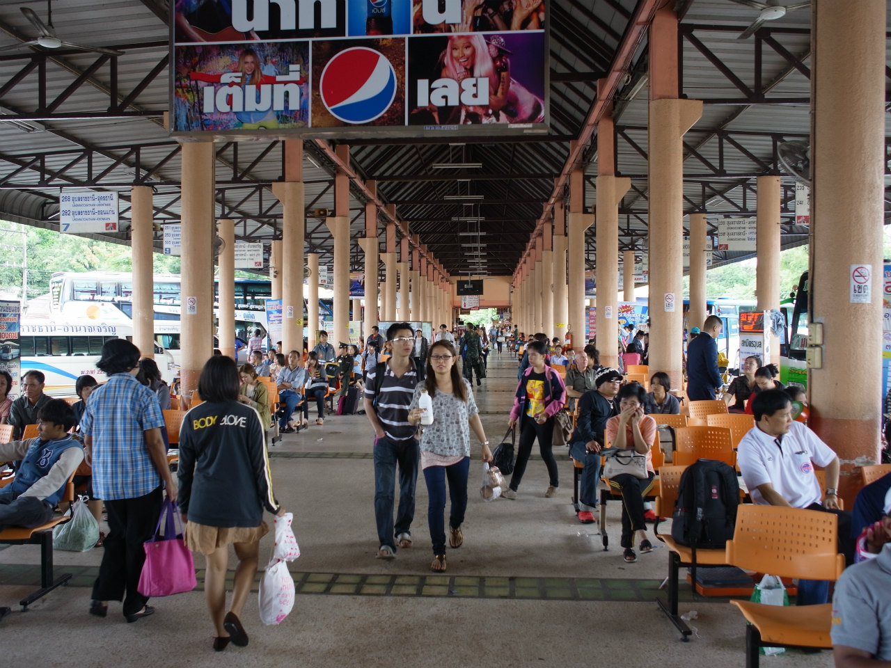 ウボンラチャタニのバスターミナル。バンコクやナコンラチャシーマをはじめとするタイ国内各地への長距離バスのほか、パクセーへの国際バスもここを起点としています。ウボンの市内からやや北郊にあり徒歩で行くのは不可能なので、ソンテウの利用が便利です。