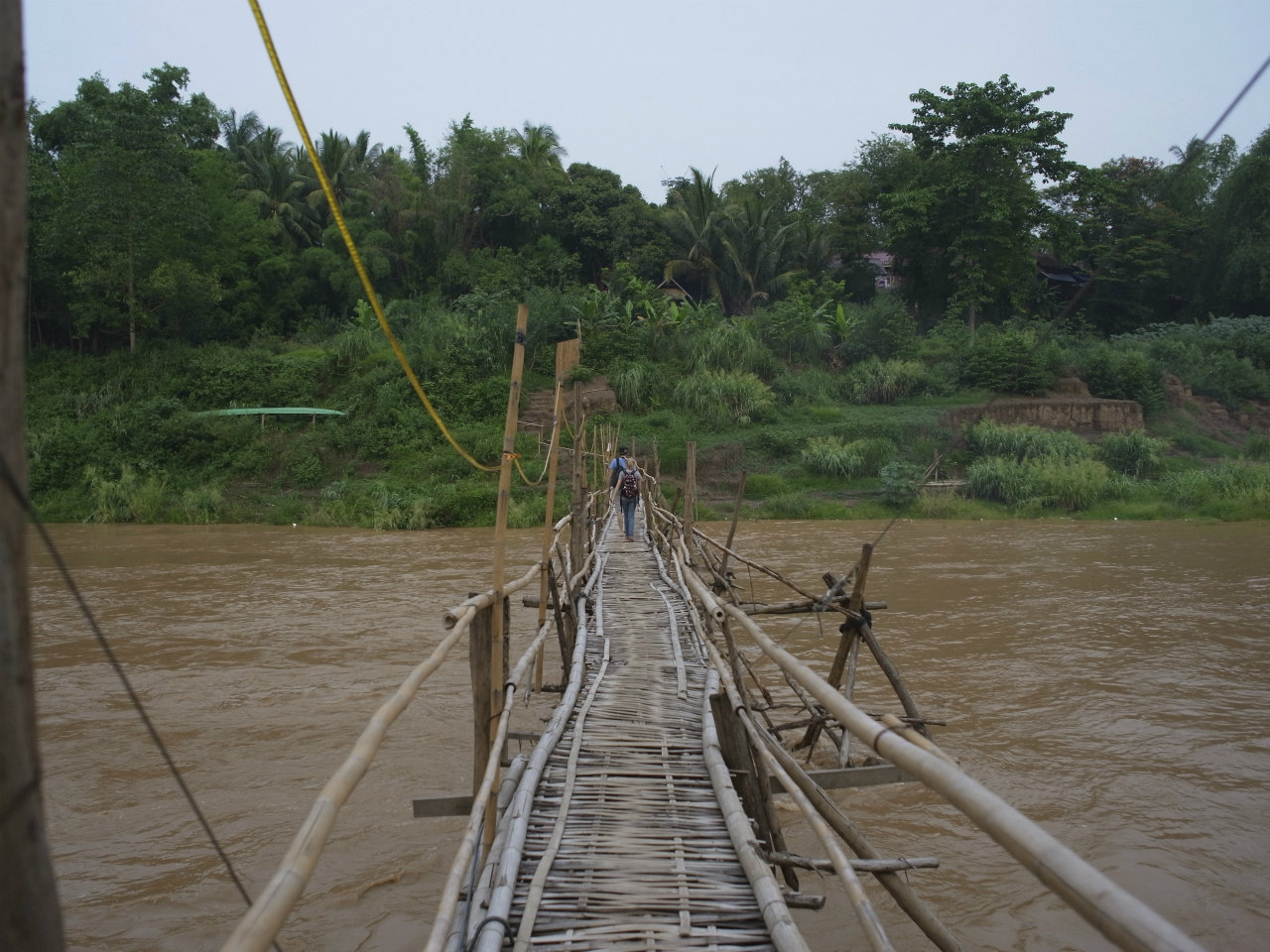 メコン川の支流、ナムカーン川のかかる竹橋です。歩くとたびにギシギシと撓み落ちはしないかとヒヤヒヤものでしたが意外に頑丈に出来ているのか無事に渡ることができました。雨季だったためか5000kipの料金は徴収されませんでした。