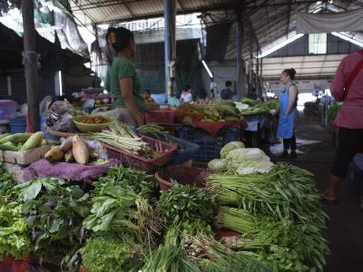 ビエンチャンの中心に立地する市場です。バスターミナルの隣という立地もあってか生鮮食料品の他に、土産物店や携帯電話の店が所狭しと並んでいます。携帯電話を扱う店ではSIMカードも販売していて外国人でも簡単に当地のSIMカードを入手できます。
