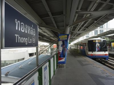 スクンビットの日本人街、トンローの入り口にある駅です。駅からトンロー通りに少し入ったところからは赤くて小さなトンローの赤バスが走っていて一律8Bでトンローの奥の方まで運んでくれます。トンローの交差点は渋滞していることが多く、渋滞を避けようと歩道をバイクが我が物顔で走ってくるので注意が必要です。