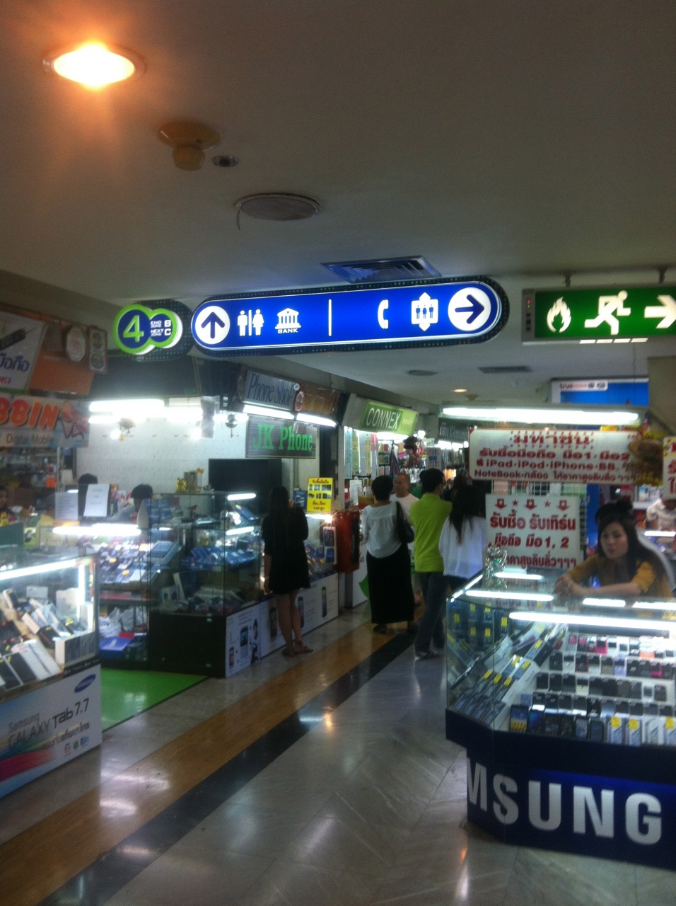 バンコクの老舗ショッピングセンターであるMBK。衣類や食事、金など様々なものを扱う店が所狭しと並んでいますが、4Fはバンコクでも随一の電脳街になっています。日本では売られていない機種も含めてあらゆる種類のスマホやタブレットを手に入れることができます。買う気が無くても見て歩くだけで楽しいスポットです。