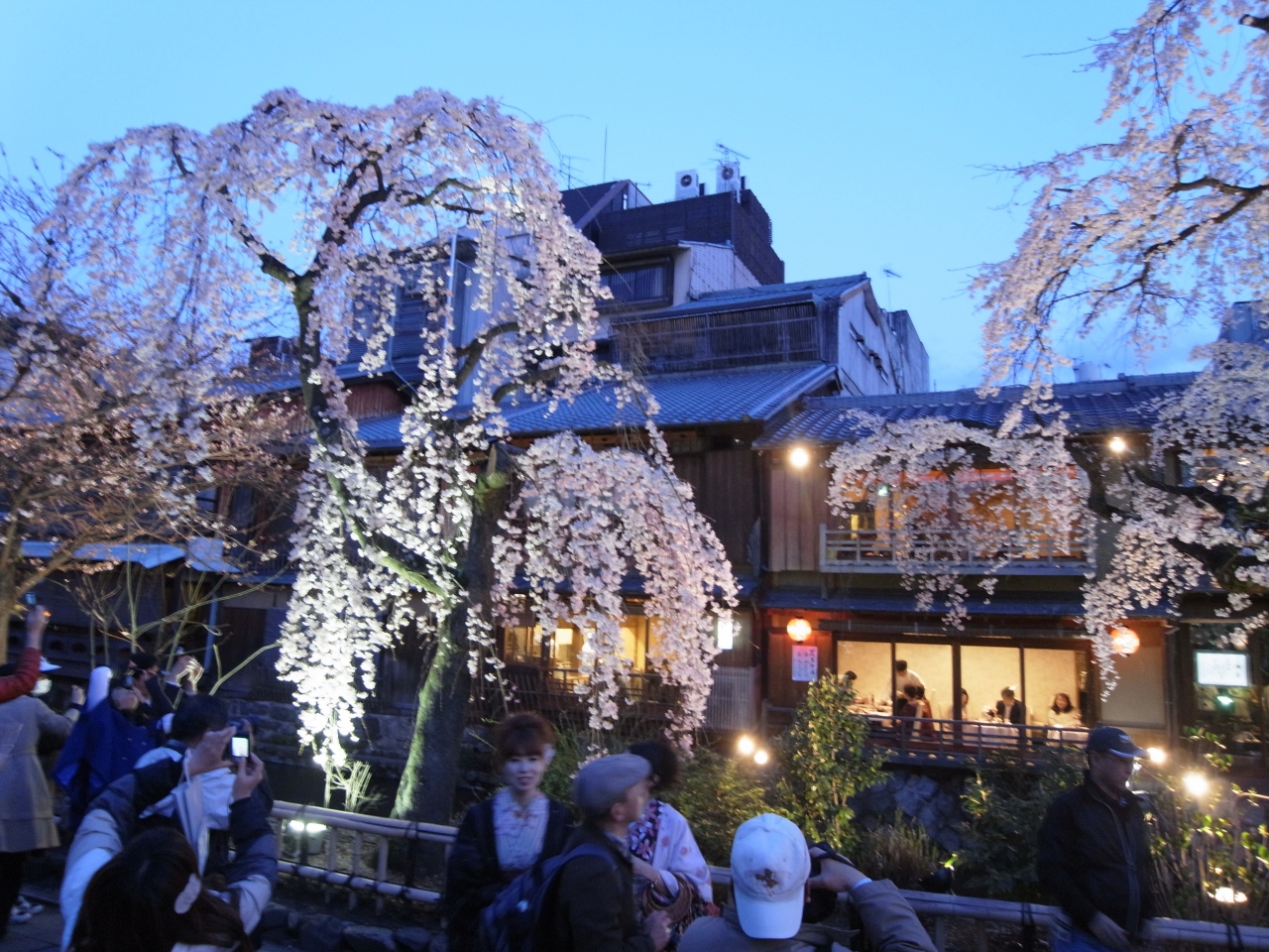 年中観光客が押し寄せる京都・祇園。桜のシーズンともなると週末には怒涛のように人が押し寄せますが平日なら花見がてらの散歩を楽しめます。夕方から夜にかけてはライトアップされた桜が美しく何度訪れても飽きない場所です。