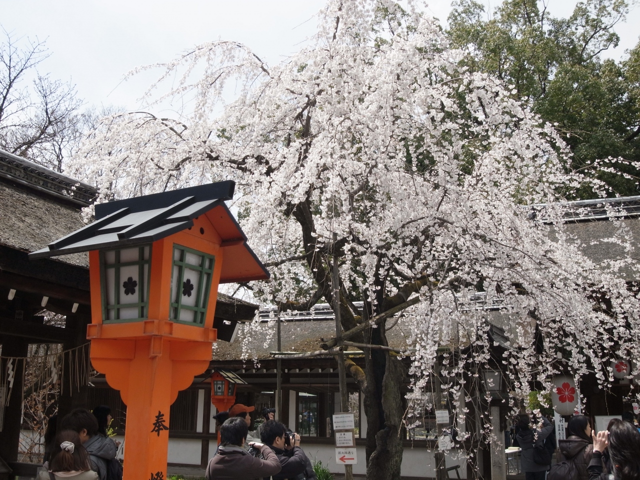 京都の花見スポットのひとつ平野神社。数十種類もの桜が植えられていて3月の下旬から4月中旬までのかなり長い期間、いろんな種類の桜を楽しむことができます。境内にはたくさんの屋台が出店しており花見酒片手にぞろ歩くのもまた一興。