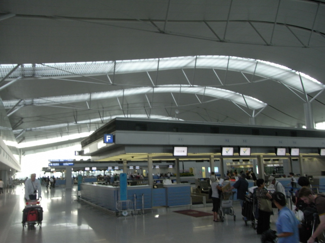 ホーチミンの表玄関タンソニャット空港。福岡空港の国際線ターミナルとよく似たつくりの空港です。エールフランスやルフトハンザ、カタール航空なども乗り入れていて意外に充実した施設になっています。空港から市街地へはバスかタクシーでの移動になりますが、タクシーは悪質なボッタクリタクシーが多数。注意が必要です。