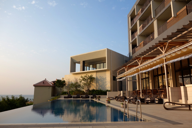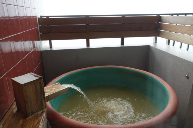 バルコニーに露天風呂のついたお部屋で、夕陽を見ながらの入浴は最高。温泉の質も、肌がつるつるになります。部屋の内装も、琉球硝子や自然素材を使った、沖縄を感じられるもの。これはいわゆる高級ホテルとまた違う、ホテルステイをしながらの「旅」を味わえる空間です。