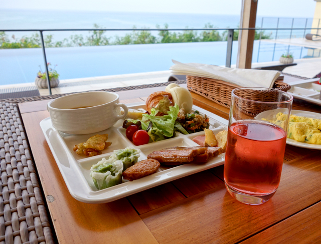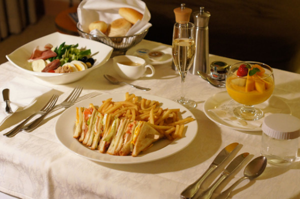 朝食はルームサービスで和食と洋食をいただきました。洋食は見た目こそ華やかで、ヨーロッパ風のバルコニーと共に優雅な気分になれますが、ジャムなどが多く、見た目よりボリューム的には少な目です。