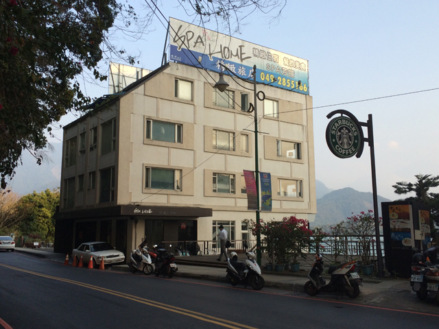 外観はごく普通の民宿、という感じですが、中はとてもスタイリッシュ。一番安い部屋だったので、部屋は広くはありませんが、日月潭を見渡せる大きな窓からの長めは素晴らしいものでした。