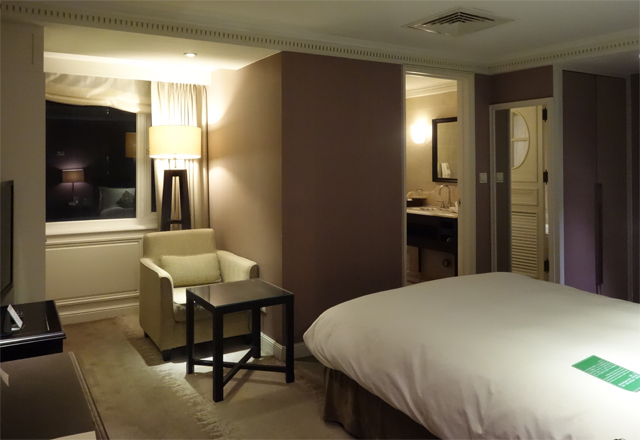 テレビが隠れてないこと以外は、やっぱりリッツ大阪っぽい感じ。でも、ベッドはヘブンリーベッドなので、こっちの方が好き。大きな机や窓際の丸テーブル、オットマン付きの椅子など、家具的な意味ではとても充実しています。