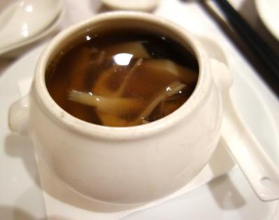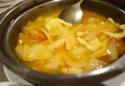 こ、これは…美味い。先ほども言ったように、フカヒレは入ってなくて、具は豚足、タケノコ、魚の皮(?)、豚のアキレス腱、タロイモ、シイタケ、栗という、高級品はないのですが、スープの味も具の味も、渾然一体感が抜群。一人1,700円ほどとリーズナブルな値段で一壺を平らげるのは、贅沢感もあって、もういきなり満足です。