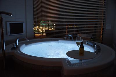 立地としては、観光にはやや不向きな場所ですので(タクシーで行きました)、ホテルでのんびりするつもりで使うのが良いと思います。リッツ大阪のようなの重厚さと南仏のアパルトマン風の建物、そして日本ならではの機能的な水回りと最新のAV機器。そして、バルコニーから見える神戸の海。
