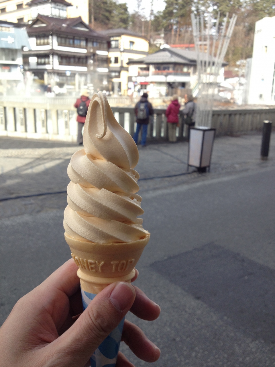 草津の湯畑の目の前にあるおみやげ物屋さんです。ごくごく普通のおみやげ物屋さんですが、思わず立ち寄ってしまったのは、温泉たまごソフトクリームののぼりが立っており、ついつい購入。味は、ミルクセーキに近い味で美味しくいただきました。あったまった風呂上りには最適です。