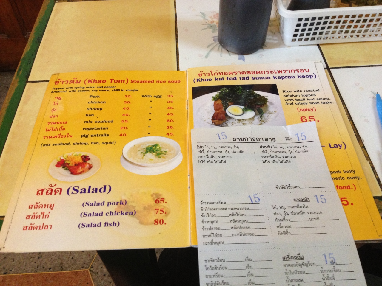 注文は、テーブルの上にメニューが書かれた紙切に書きます。タイ語しか書かれてないので、さすがにメニューを指差すか、周囲の人に書いてもらいましょう。