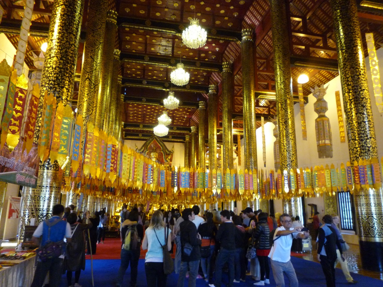 年末12月31日に行きましたが、寺院の中には、日本でいうと絵馬のようなものを沢山ぶら下げていました。20バーツだったかな、払えばその場で願い事?を書いて、ぶら下げられます。寺院も仏像も見事ですが、裏手には超巨大な仏塔跡があり、こちらも見所ですが、登れないのがちょっと残念です。