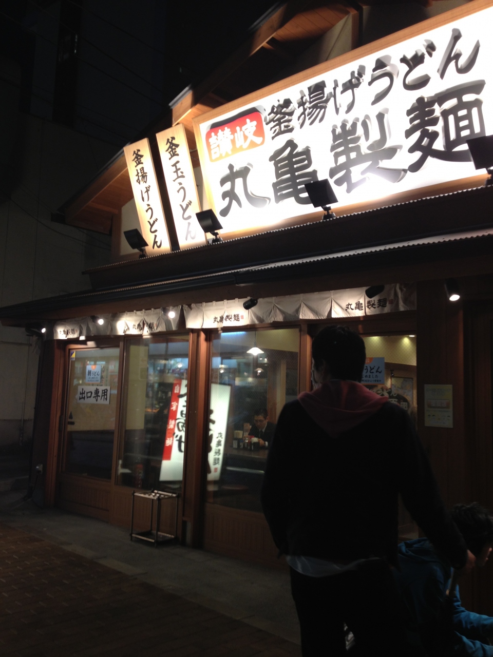 一風堂がある通りにあり、若者で溢れている通りながら、お昼時になると老若男女で行列ができていました。味は、通常の丸亀製麺と同じで美味しいです。- 旅行時期