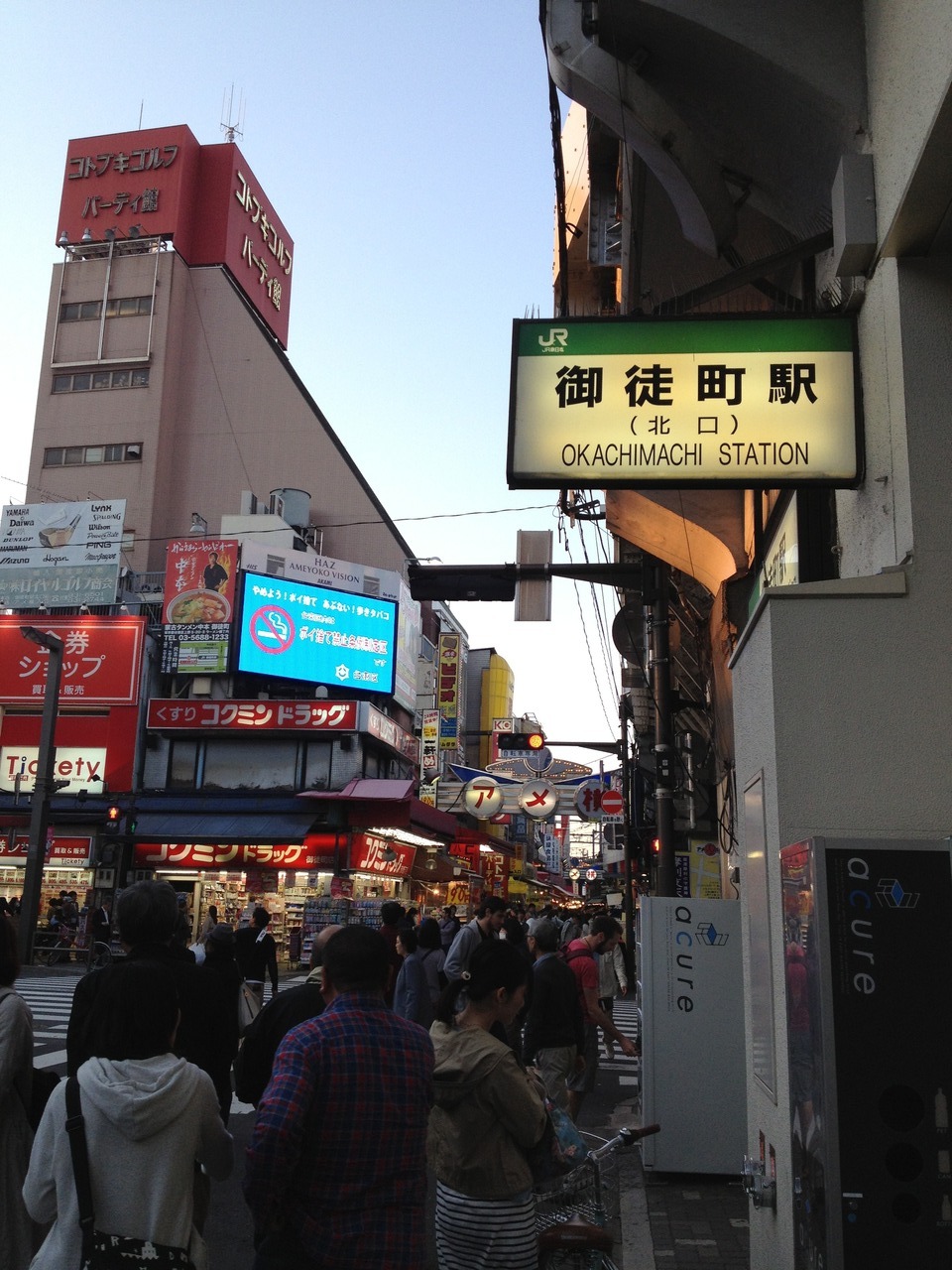 上野駅の中央改札を出て少し進むと、左手側にあります。ネオンサインが光っているので、目印になります。中に入ると、ギターピンやTシャツを売っているショップがあります。
