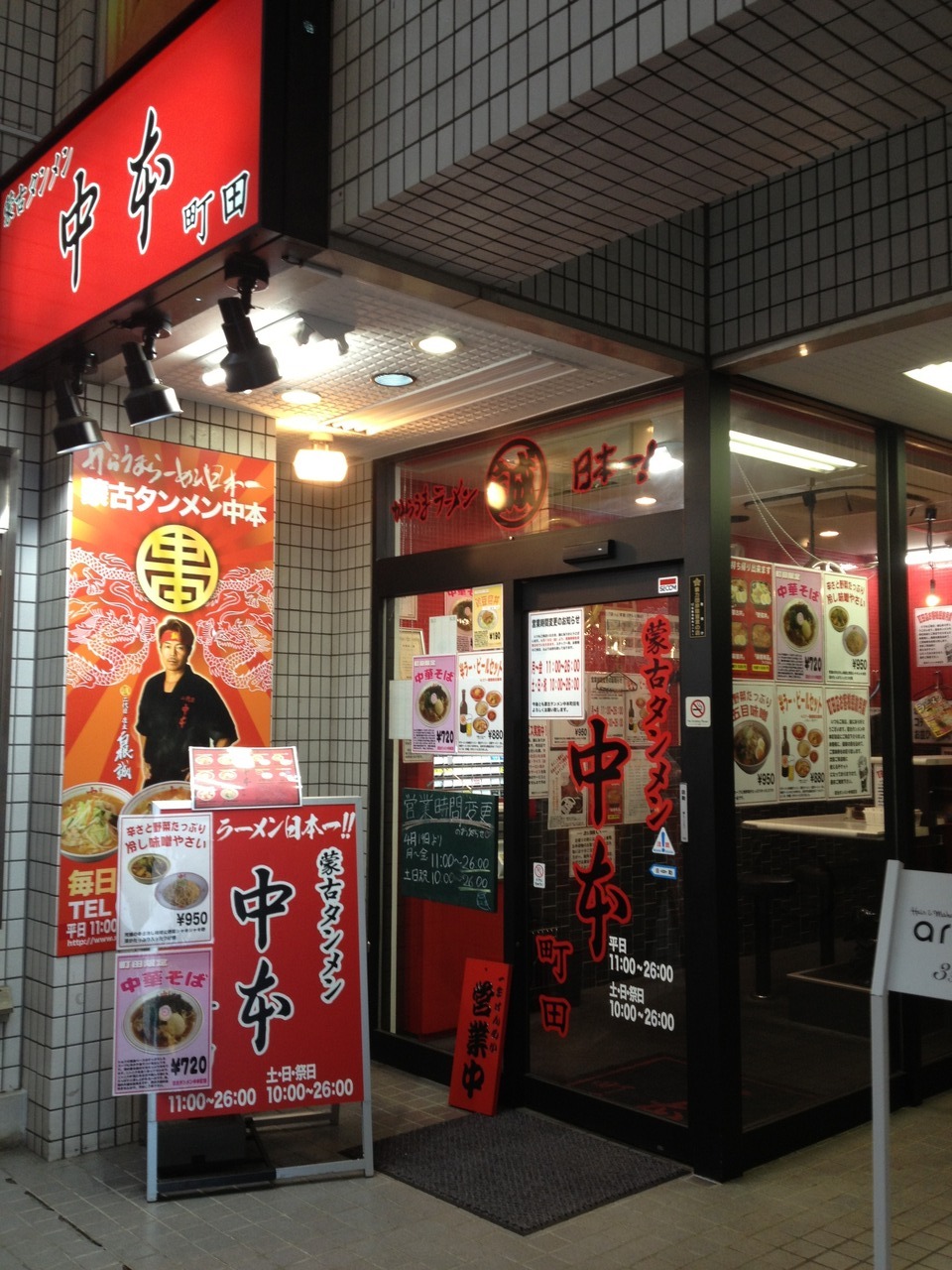激辛ラーメンで有名な中本の町田店。小田急町田駅の北口を出て、徒歩3分ほどです。