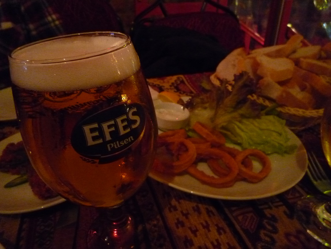 このお店は、ビールをまけてくれるということで、このお店に決定。欧米の方たちは外で食事をしてましたが、我々には寒かったので店内に入りました。