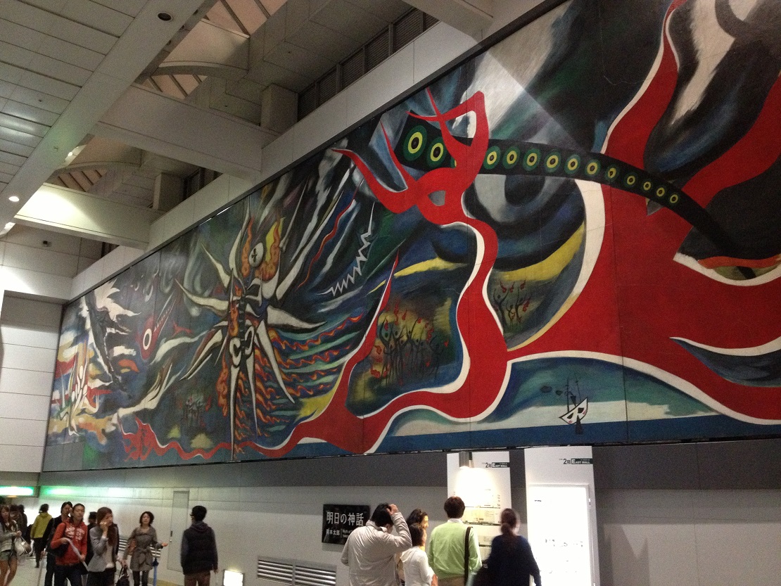 待ち合わせ場所として、個人的にオススメしたいのは、井の頭線の改札を出て、少し進んだ所にある、岡本太郎の巨大な壁画のある広場。広々として人通りも多いですが、意外に立ち止まっている人が少ないのですぐに見つけられます。