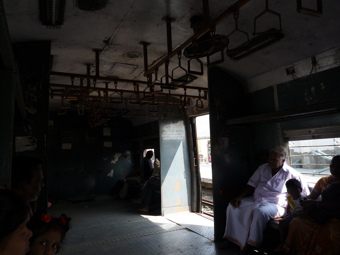 チェンナイの中心地から、カーパーレーシュワラ寺院の方面へ線路が続いているのがMRTS。値段もはっきりしているため、旅行者には安心して使えるという利点があります。ただ、私が乗った車両はドアが無く、インドだなぁと、ちょっと楽しくなりました。