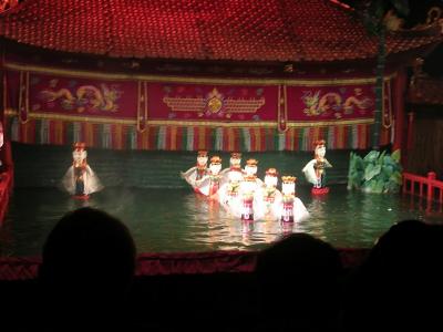ハノイの中心部にハノイの伝統芸である水上人形劇場があります。チケットは当日でも劇場のブースで買うことができます。内部では、演目の内容について日本語の冊子があるので内容はおおまかに理解できます。