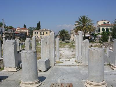 モナスティラキ駅を降りると目の前にあるのが、かつては図書館だったとは思えない見かけのアドリアヌスの図書館。アクロポリスの丘に登る前に、アテネの中心地を歩いていると、一番最初に遭遇する遺跡で、こんな町のど真ん中に遺跡があるなんて、さすがアテネ!と思わせてくれる遺跡です。