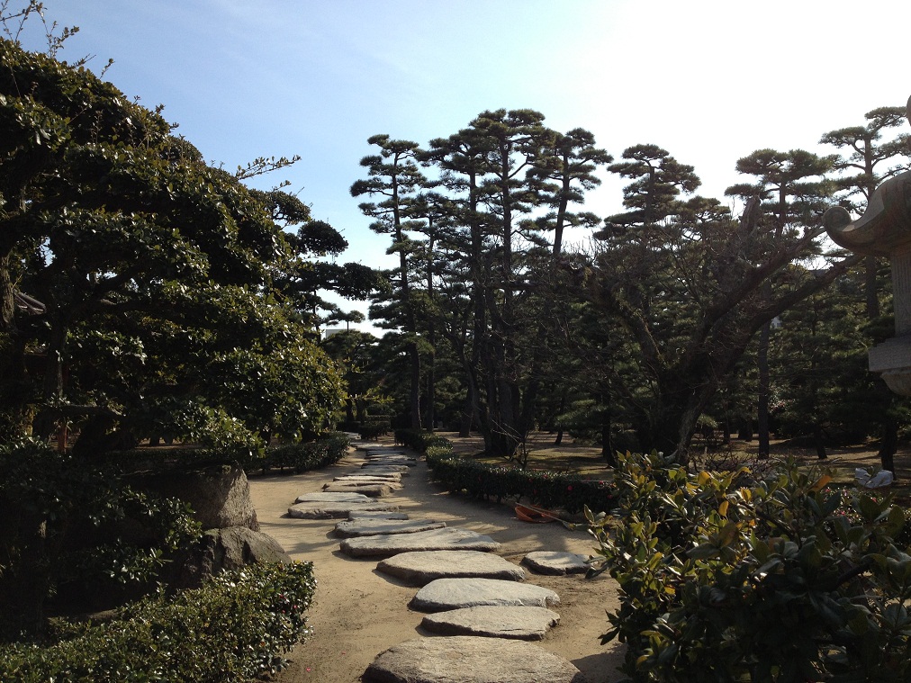 サンポート高松の脇の琴平電鉄築港駅の裏手にあるのが玉藻公園です。昔は徳川系の松平藩が大きなお城を建てていたということですが、今はその基盤の石垣部しか残っておらず少しさみしい感じです。櫓が二つ残ってはいます。