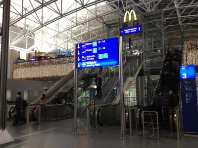 デュッセルドルフ空港には二つの建物がありますが、日本航空系だとメインの建物とは別の建物に到着するので、スカイトレインと呼ばれる乗り物に乗って移動します。メインの建物には、行き先の番号ごとに表示があるので迷うことはないと思います。空港駅は近距離用と長距離用に駅が分かれているので、間違えないよう気をつけましょう。