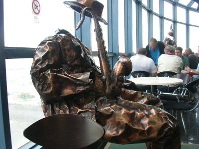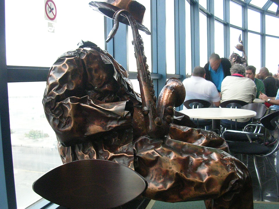 出国の待合室では、簡単な食事が可能です。また小さいながらもおみやげ物屋もあります。TシャツやCDを沢山売ってました。でも、値段は高いのでなるべくお土産は空港じゃない場所で買いましょう。
