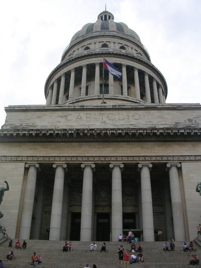 目の前には広場があり、現地のキューバ人と一緒にカピトリオの階段に座り広場を眺めていると、あぁ、遠くまで来たんだなぁと実感できる場所です。さらに、入り口の頭上にはキューバの旗がなびいており、これも雰囲気アップに一役かっております。