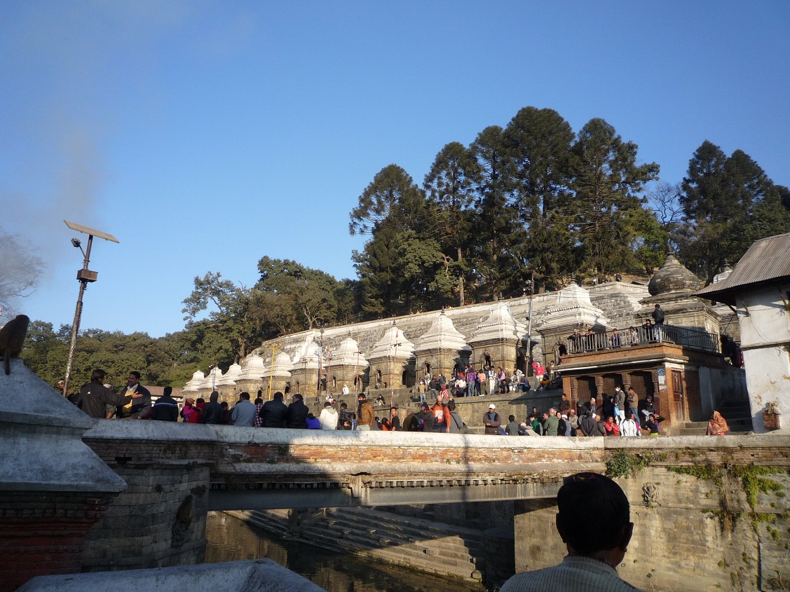 入口で入場料を払い入ると、すぐ川が流れており、インドのガンジス川のように火葬が行われていました。煙があがる中、川を渡ったところにある寺院を見てまわります。このエリアはどうやら流行りのデートコースらしく、物影にカップルが沢山潜むようにいました(笑)シカが、オリの中で放し飼いにされており、餌付けもできますよ。