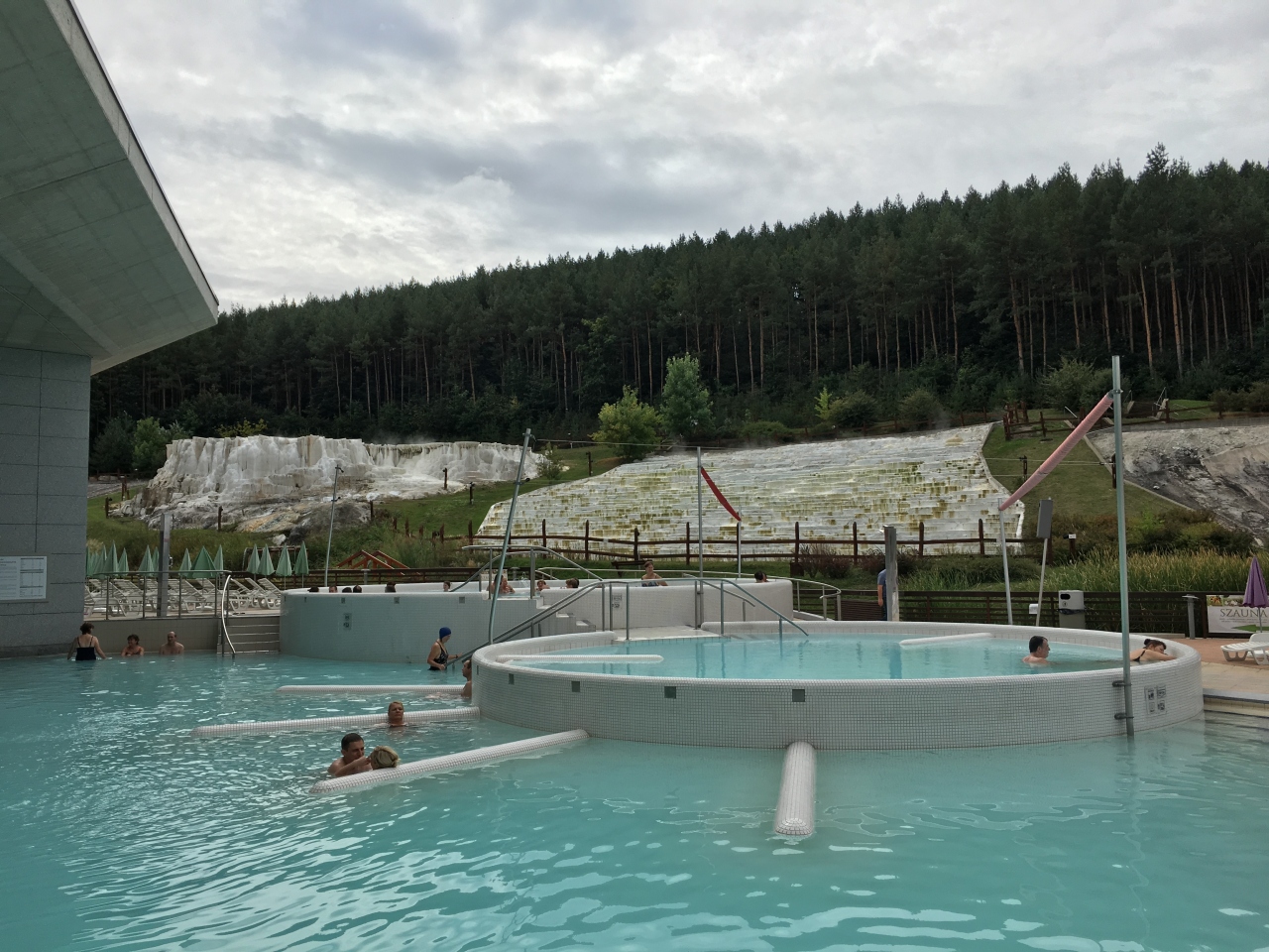 エゲルのバスターミナルからバスで15分ほど走った場所にある温泉施設兼ホテルです。バス停を降りるとホテルと石灰棚があるのですが、石灰棚からはホテルに直接行けないので気を付けましょう。
