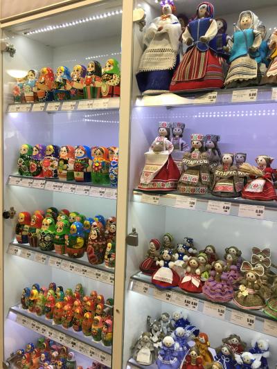 お土産物屋さんにマトリョーシカがずらりと並んでいるのを見て、ロシアだなぁと思いました。- 旅行時期