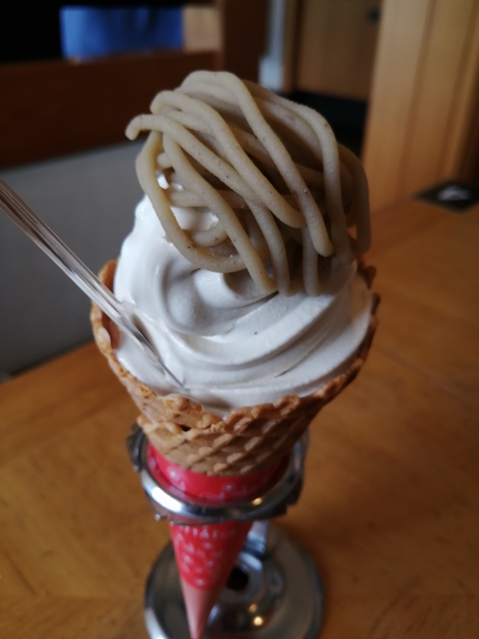 小布施の北斎館の目の前にある和菓子店兼甘味処です。栗のかき氷とソフトクリームがとても美味しそうだったので、ついつい入店。かき氷は栗密がかかっていて、上にはバニラアイスと栗がトッピングされていて、とても美味しかったです。ソフトクリームはモンブランのようなペーストがトッピングされておりこちらも美味しかったです。