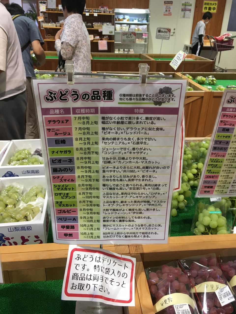 甲府南インターチェンジからすぐの場所にある農産物直売所です。立ち寄るつもりはなかったのですが、大きな看板があり分かりやすく、建物も大きくいろいろと売られていそうだったので急遽立ち寄りました。ぶどうの季節だったので、かなりの種類のぶどうが売られていました。今回訪れたときはぶどう狩りをした後だったので購入しませんでしたが、次回はぶどうを買いたいと思います。