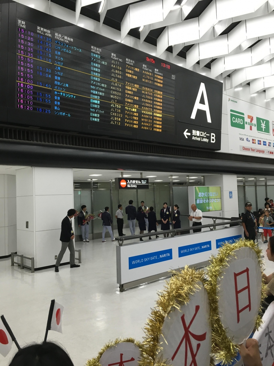 オリンピックで活躍したの柔道選手をお出迎えするために成田空港まで行ってきました。アクセスは、空港バスが乗り換えなど楽ですが、コスパよく時間も効率的なのが形成スカイライナーでした。1階が国際線の到着ロビーになっています。出口はAとBの二か所あるので、どちらから出てくるか確認しないとうっかり出会えないので気を付けましょう。2か所の間に待合椅子と目印のポストがあり、待ち合わせ場所としてはちょうど良かったです。