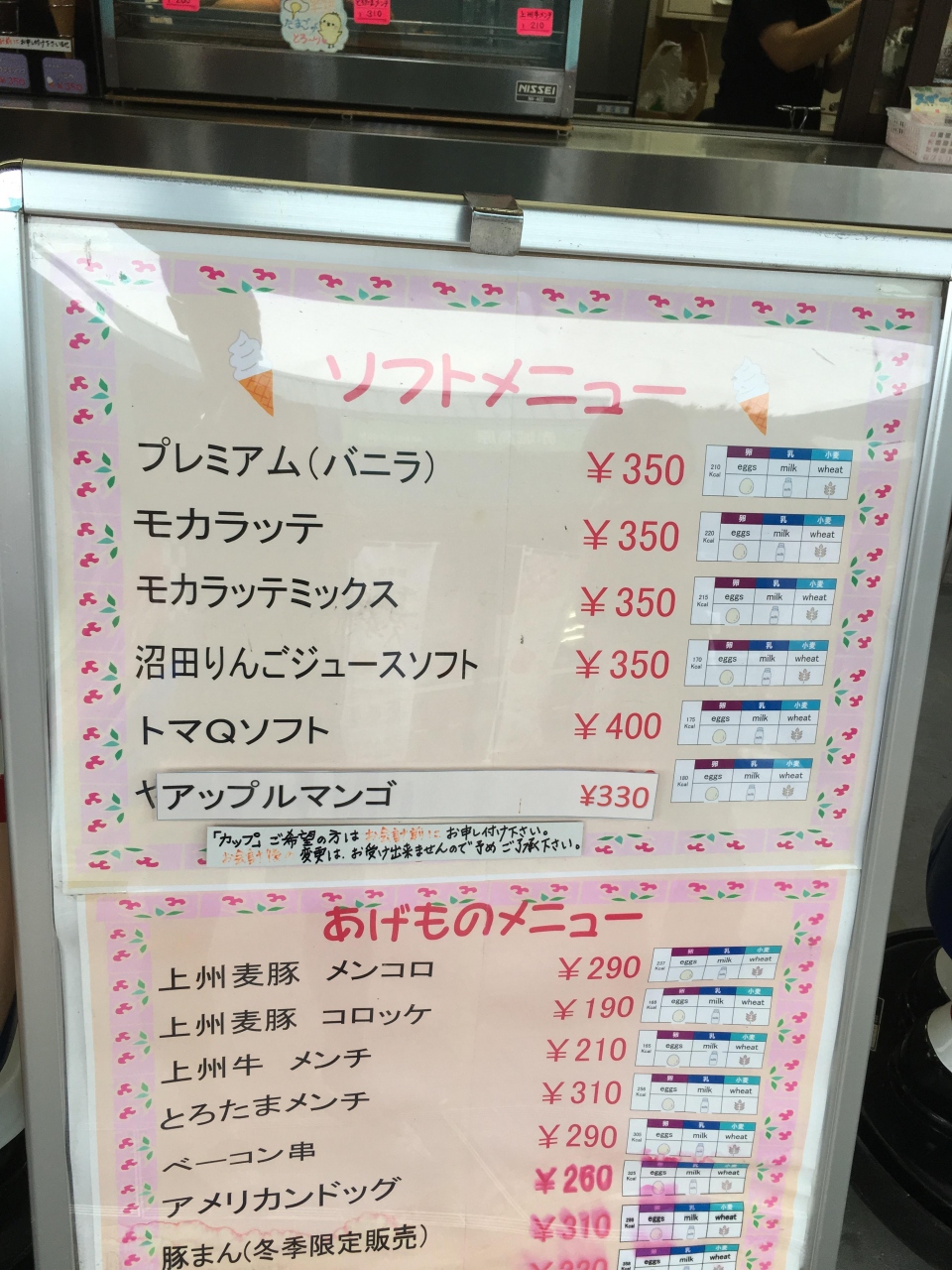 新潟から東京に戻る際に立ち寄りました。知り合いの方から美味しいソフトクリームがあるからと紹介されたのですが、最近どこでも見かけるようになったクレミアでした。ただ、ソフトクリームだけでなく越乃黄金豚という名物な豚がいるようで、そのフランクフルトがおいしかったです。