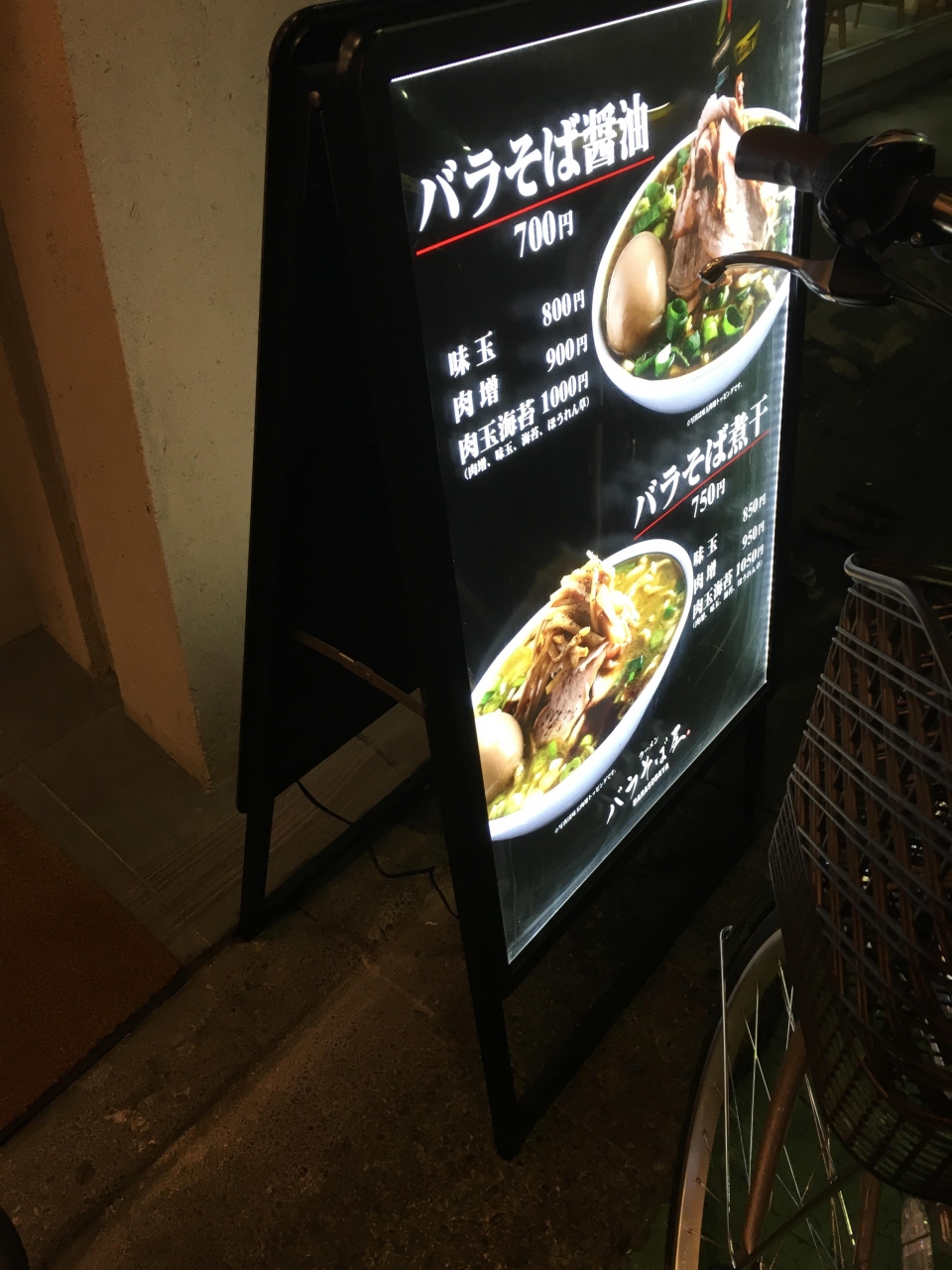 本当はおやじに行きたかったのですが閉まっていたので、途中に見かけたこちらを訪れました。おそらく最近オープンしたと思われます。バラそばということで、薄めのバラ肉が丼ぶりの中心に盛られています。スープは予想と異なり意外と家系な感じで、ちょっと最近家系は苦手だったで、微妙でした。家系が好きな人には良いと思います。