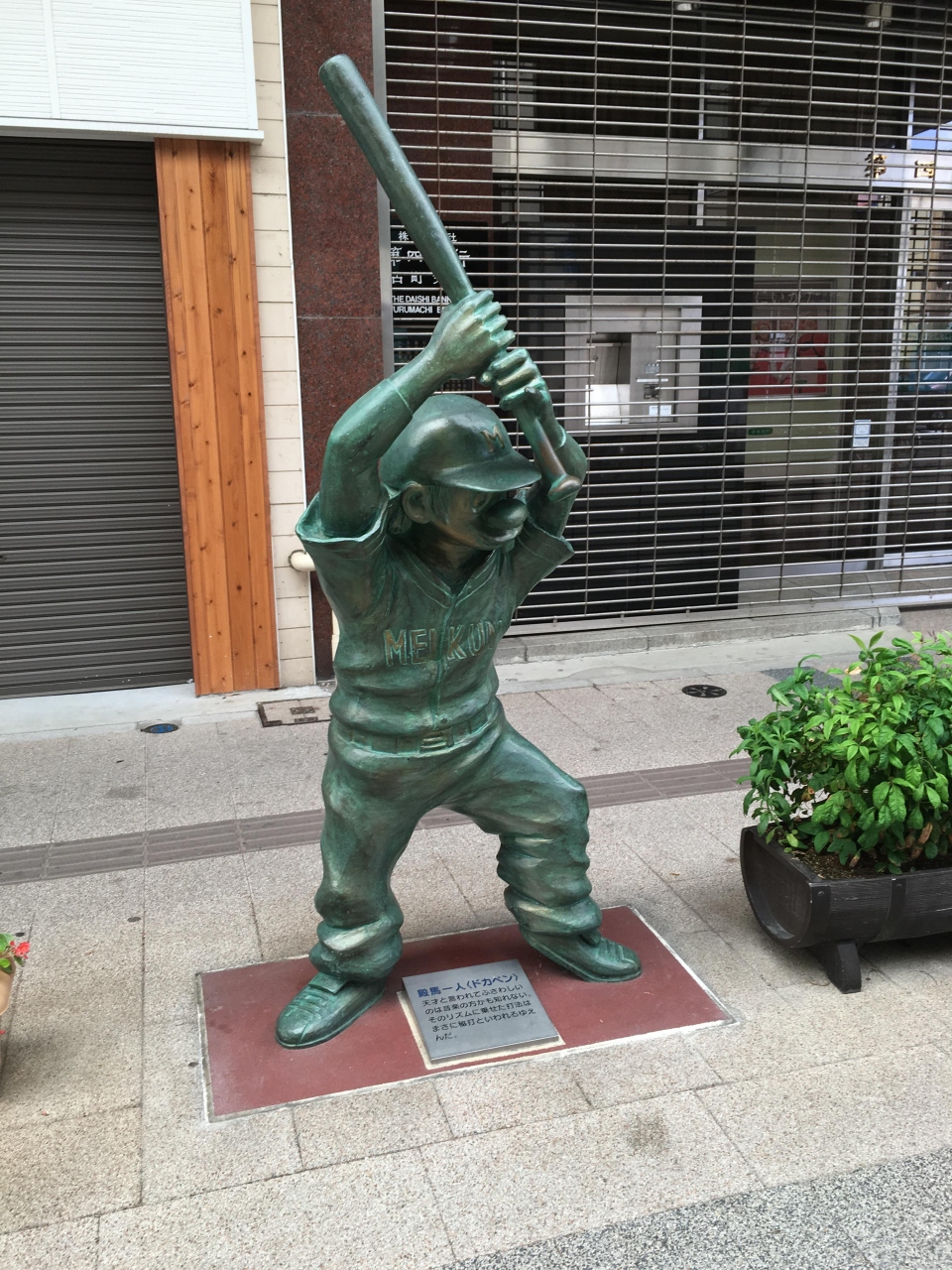 新潟の古町5番街アーケード内にあります。アーケードに入ると最初はイワキがお出迎え。そこからは、里中くんやあぶさんなど、昔を懐かしむ方々はついついシャッターをきってしまう銅像が並びます。最後にはドカベン!バットがものすごい勢いでしなっているのが印象的でした。
