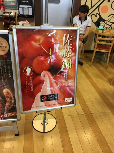 東京から新潟に向かう途中に休憩で立ち寄りました。特に期待はしていませんでしたが、ソフトクリーム好きの私が見逃せなかったのが、サクランボの佐藤錦のソフトクリーム。シャーベット系のソフトクリームでしたが、おいしくいただきました。