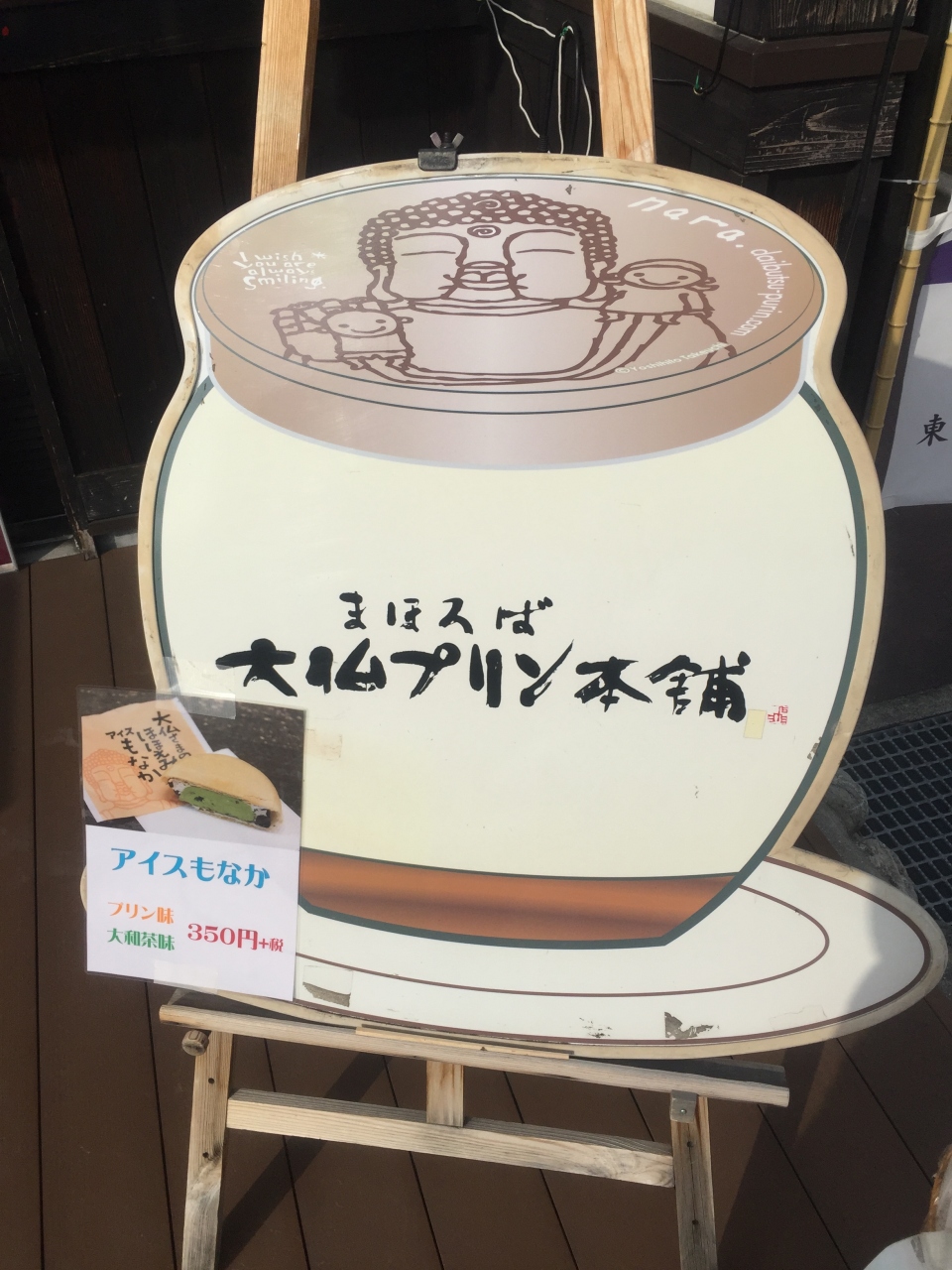 東大寺の表参道の入り口付近にあるマルシェ、夢風ひろば内の、夢風いちばの内部に店舗があります。大仏プリンで有名なようです。オープン直後には、いろいろな種類がショーケースに並んでいましたが、昼食を食べた後に再度訪れると既に数種類は売り切れていました。お目当ての品がある方は午前中に訪れましょう。