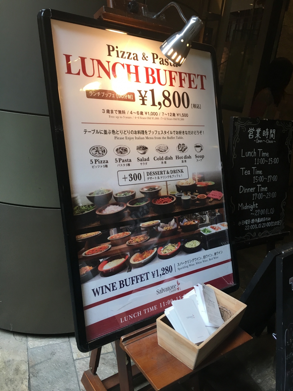 六本木ヒルズ内にあり、ランチは食べ放題を行っているイタリアンのお店。サルバトーレクオモはピザで有名なお店ですが、ピザは4種類ほど準備されていました。ゴルゴンゾーラのピザが個人的には好みでした。サラダは種類が多くもりもり食べられる感じです。リーズナブルに済ませるのであれば、ドリンクはなしでもオッケーでした。