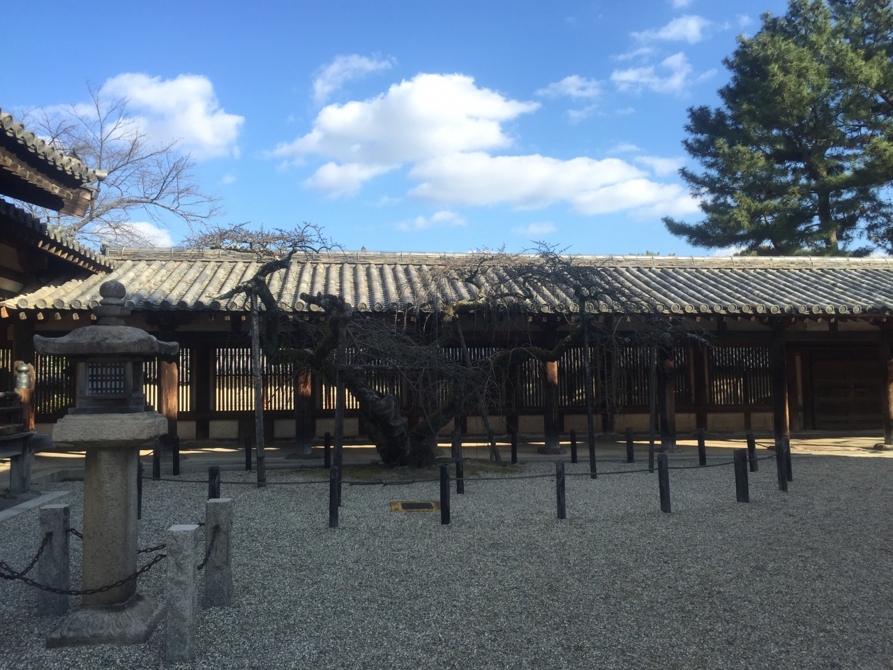 西院伽藍の東側に位置する建物で、法隆寺に住んでいるお坊さんが生活していた場所です。南北に細長い形をしています。この場所も国宝に指定されており、お坊さんが住んでいた場所でさえもそのような扱いを受けていることに法隆寺のすごさを感じました。