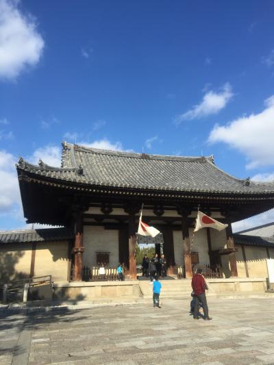 法隆寺の参道に面した、まさに法隆寺のメインエントランスの場所にある門です。1438年に再建されたもののようです。いよいよ法隆寺に来たんだなとワクワクした気持ちでくぐることになるかと思います。祝日だったので日の丸も飾られていました。