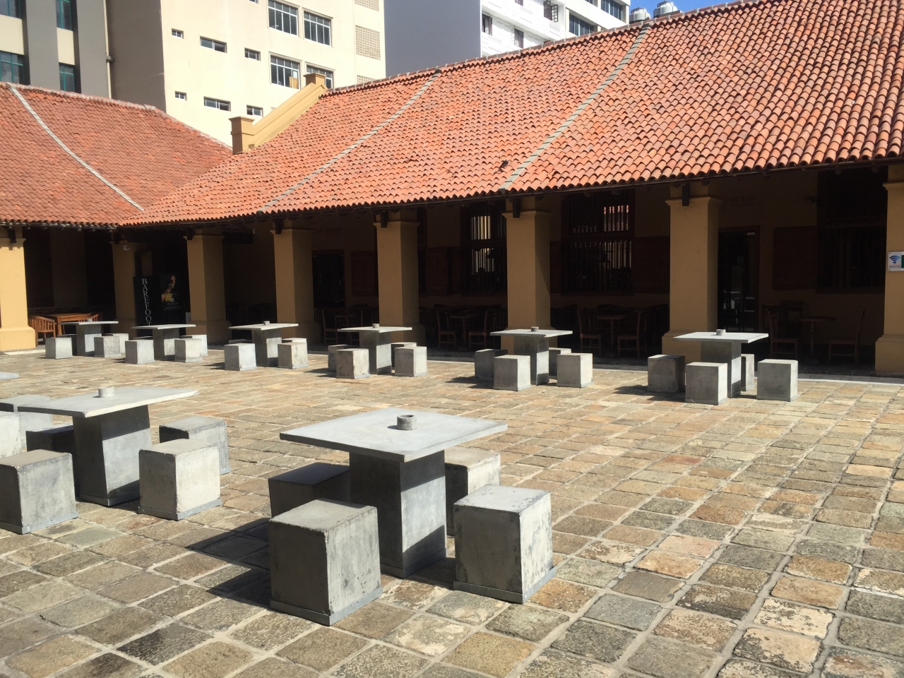 ゴールの街中にある洋風な見た目の大きな建物。カフェやお土産物屋さん、ちょっとした博物館などが連なっています。要塞をぐるりと半時計回りにまわっていくと最後の場所にあたるので、一休みするにはちょうど良いかと思います。ブティックはちょっと高級な店舗が多かったです。