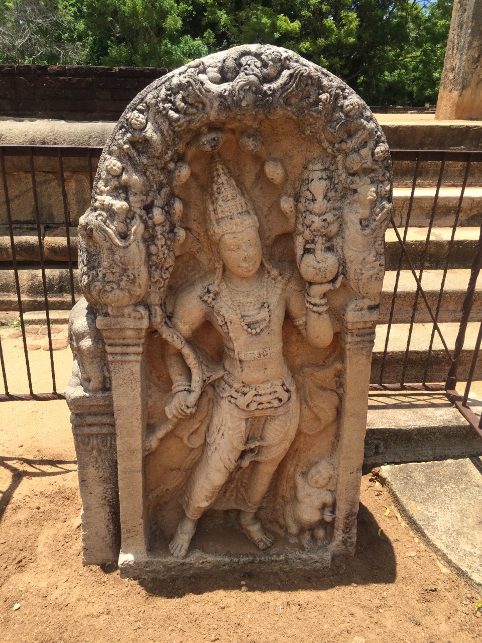 ムーンストーンがあるエリアの脇にひっそりと立っています。傍から見ると何かの遺跡跡のような見かけですが、宮殿跡ということです。その土台の手前に王の姿が彫られたガードストーンがあります。かなりキレイに残されていますので時間に余裕が有る場合は見てみると良いと思います。