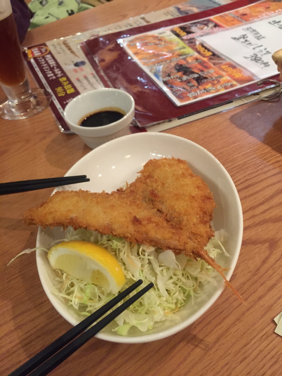 まず、併設の温泉のチケットがドリンクチケットになっており、そちらを提示するとグラスビールが無料です。さらに驚いたのは、本日のおすすめメニューであった、魚の中骨焼き。格安であったにもかかわらず、中骨焼きが、大きな皿にどっさりと盛られてでてきます。手で持ってむさぼり食いました。オススメのお店だと思います。