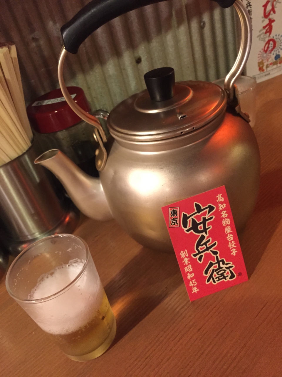 JR恵比寿駅から徒歩で10分ほど東にある餃子屋さん。高知県で有名な餃子屋さんが東京に進出してきた一号店。週末の6時頃に伺いましたが既に4人の人が入店待ちの状態でした。結局1時間ほど待って入店。ビール好きならばやかんビールがオススメ。餃子は焼いた後少し揚げた感じでつまみにぴったり。ついつい食べ過ぎてしまいました。