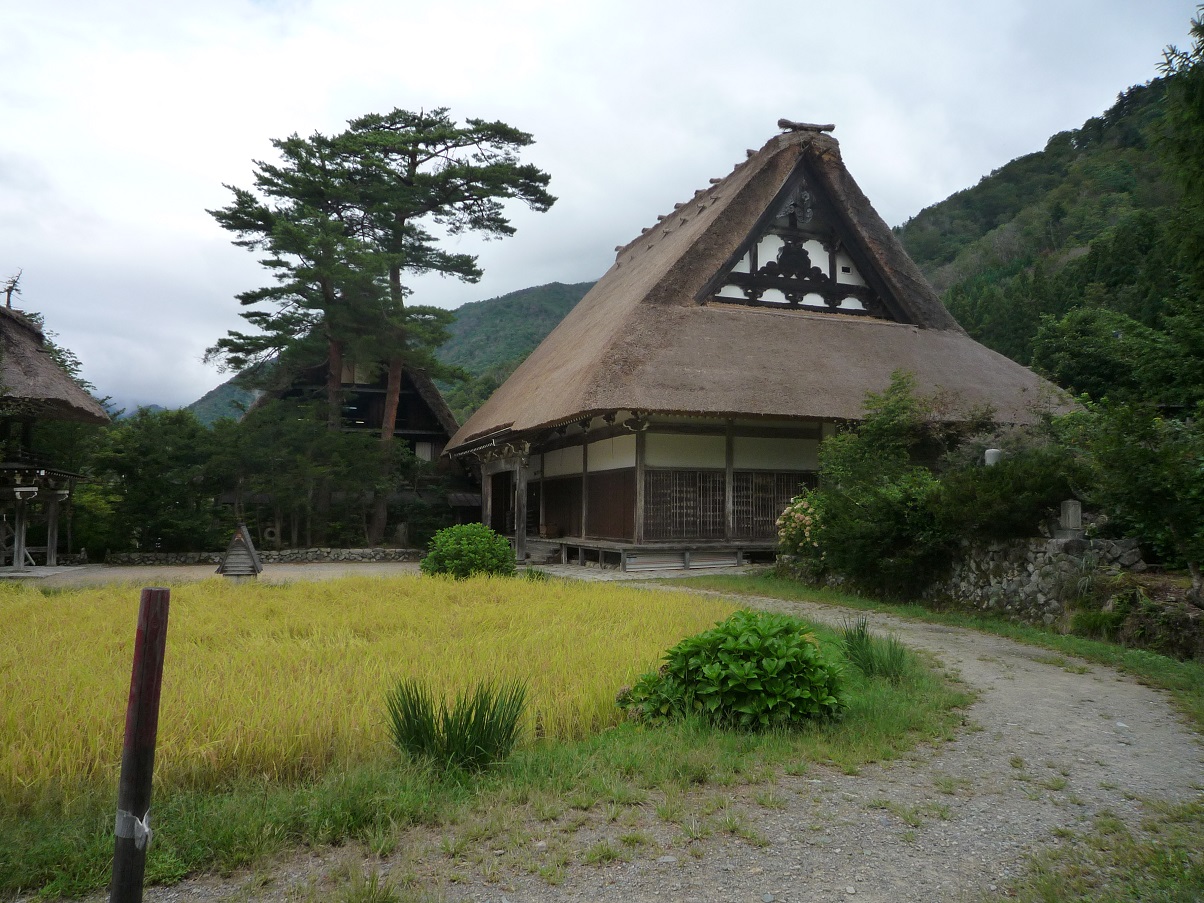 日本の世界遺産の一つである白川郷。雪の無い季節に行きましたが、見所は多かったです。まずは、一般の家屋を公開している家もあり見学ができます。屋根裏の、ずぶとい梁が非常に印象的でした。民家の先にある高台に登ると、白川郷の家屋が一望できます。